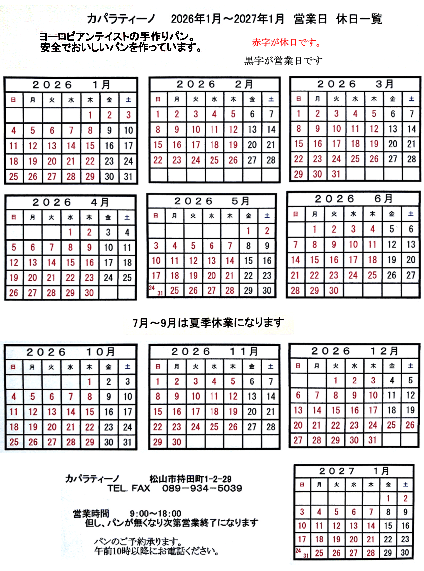 【注】年末年始休業・ゴールデンウィーク休業・夏季休業があります